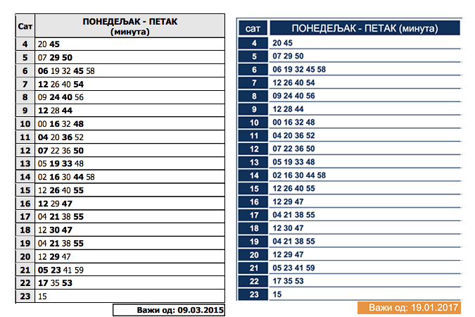 Ono što nam najviše smeta jeste da se red vožnje koji su nadležni iz Sekretarijata za saobraćaj osmislili u decembru 2014. godine koji je izmenjen u martu 2015. godine ne razlikuje od današnjeg. Uporedite sami na slici ispod.