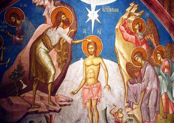 Tada mu Isus odgovori: „Pusti sada jer tako treba da ispunimo svu pravednost.” Posle ovoga Jovan pristade da krsti Isusa. On potopi Isusa u reku i krsti. A u trenutku u kome je Isus po izvršenom krštenju izlazio iz vode, nebo se otvorilo i Duh Sveti u obliku goluba – simbola čistote, bezezlenosti i svetosti, lebdeo je nad Njim i čula se gromoglasna reč Božja: „Ovo je sin moj ljubljeni, koji je po mojoj volji.“ Kroz taj čin se pokaza i misija Hristova u svetu i put našega spasenja jer Gospod uze grehe čitavog čovečanstva i pod njima umre (potapanje) i ožive (izlazak iz vode).